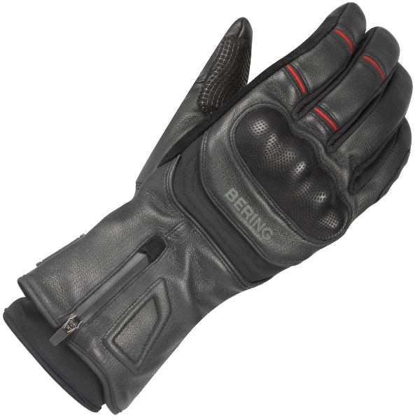 The BERING HALIFAX motorcycle gloves, made from goat leather and Softshell, are equipped with a waterproof membrane to handle any weather condition. Their sensor system ensures the use of touchscreen devices, while the double wrist adjustment and long cuff ensure a perfect fit. The gusset and zip at the wrist make them easy to use.