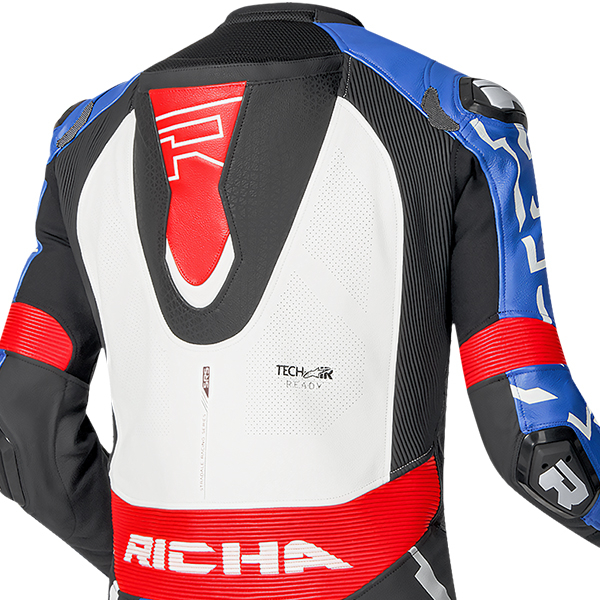 The Richa Stradale 1 Piece Racesuit features an outer shell made from 100% genuine cow leather, offering exceptional durability and abrasion resistance. Reinforced with D3O® protection on the shoulders, elbows and knees, this racesuit guarantees maximum protection on the track or the street. The suit is also prepared for D3O® chest an  d hips protection, ensuring comprehensive safety. Additionally, it is compatible with the Alpinestars Tech-Air 5 airbag system, providing advanced impact protection.