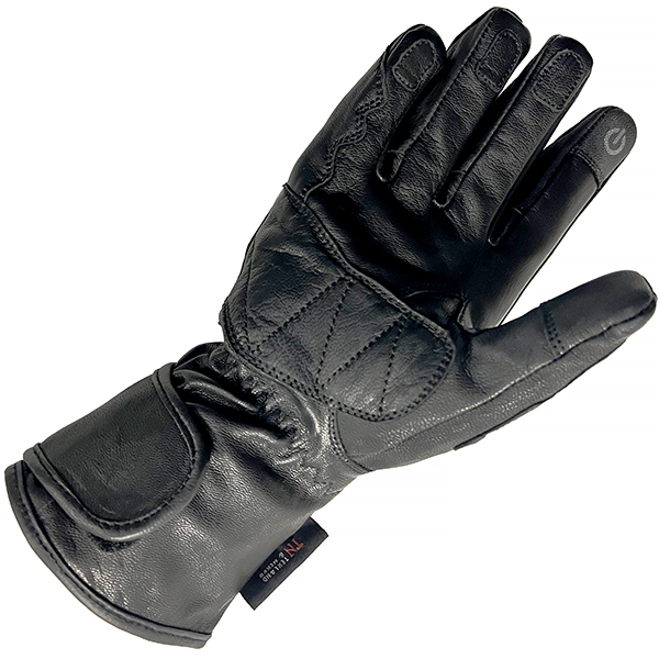 Waterproof sports glove with lightweight lining, leather covered moulded knuckle protector, reinforced palm, elasticated wrist and velcro cuff closure.