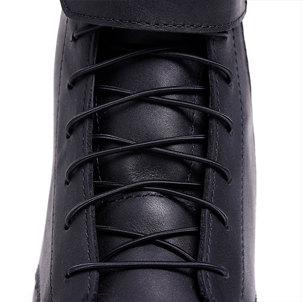 The fit is easy and adaptable owing to the combination including a side zipper and stretch laces.